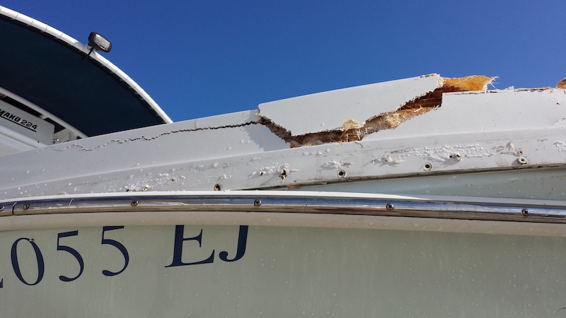 Mientras regresaban a su embarcadero en un crucero con camarote de 25 pies, nuestro cliente y su novia se adentraban con precaución en el canal a medio gas. De repente, otra embarcación que circulaba al doble de velocidad golpeó la popa de la suya. El impacto fue tan fuerte que la novia del cliente salió despedida hacia delante y tuvo que ser trasladada al hospital desde el lugar del accidente.
